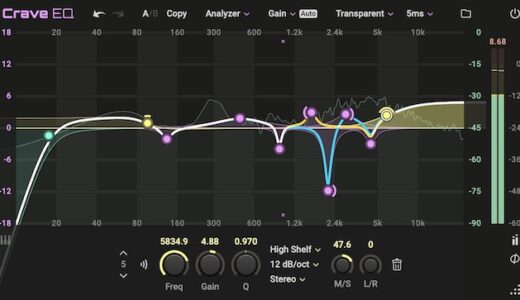 「低負荷、質良し、機能も充実」なトラック処理にオススメのEQプラグイン!Crave DSP【Crave EQ】レビュー