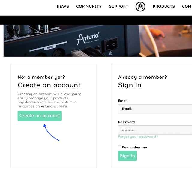 インストールしたらソフトを開いてArturiaのアカウントでサインインしてください。