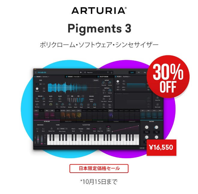 Arturiaのフラッグシップシンセ【Pigments 3】が日本限定クーポン使用で30%OFF!(〜10月15日まで)