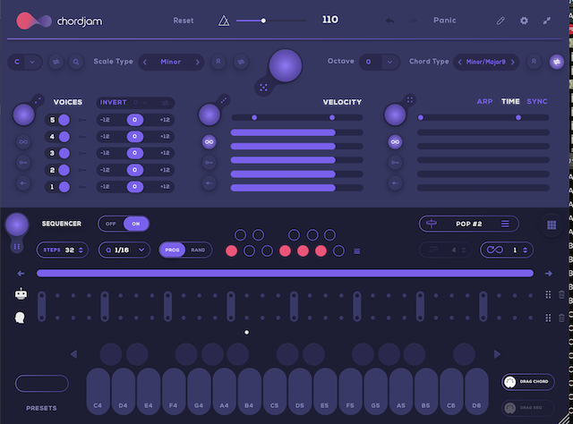 そんなAudiomodernからリリースされた究極のコードマシン【Chordjam】は、コードの制作や演奏をサポートするプラグインではありますが、アルペジェーターやシーケンサー、パッド、などの機能も備え、単なるサポートマシンを超えたクリエイティブなプラグインとなっております。