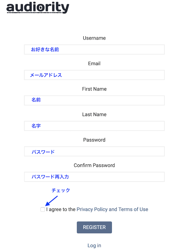Audiorityをクリック、Registerと進んで、あとはAudiorityのメールアドレスとパスワードを入力すればアクティベーション完了です。