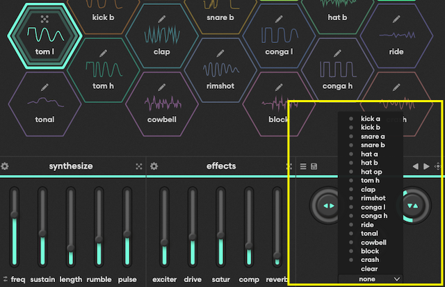使い方としては、プリセットのキットから選んだり1から自分で音作りしてもいいのですが、私的にはランダムボタンでガチャって良い感じのに当たったらそこからさらに自分好みに調整する、という流れが良い感じでした。