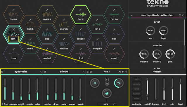 ちなみに、Teknoのマスターセクションは通したいけど、自前のエフェクトでもミキシングをしたい場合は、ドラムパターンが決まってからキットごとにソロで書き出して使えばOKです。