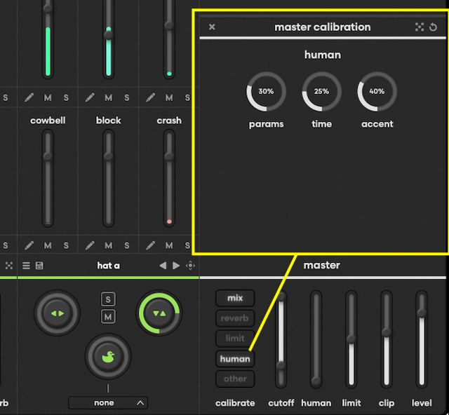 Human機能(←これが良い感じ)やセンドエフェクトであるリバーブのパラメーターにアクセスしたりできます。