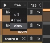 シーケンサーのテンポは自由に設定できるFreeモードとDAWと同期するDAWモードから選べます。