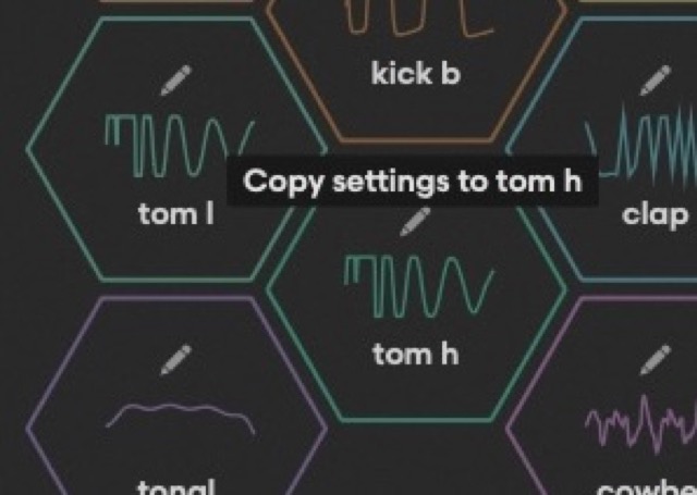 ランダマイズを使ってタムLowに好みのサウンドを生成し、タムHighに同じサウンドのピッチ上げたバージョンを生成したい場合、右クリックで簡単に同じサウンドをコピーできるようになりました。