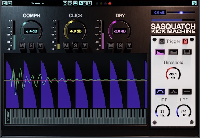 Sasquatch 2はキックの低音を含むメインのボディ部分を生成するOOMPHと、高音域のアタック部分を生成するCLICKドライ音のDRYという3つのセクションからできています。