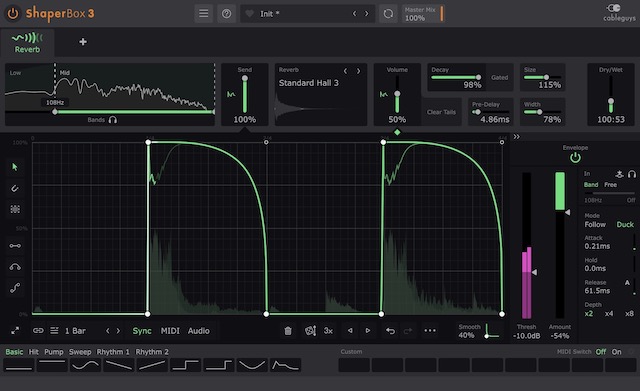 強弱にあわせてリバーブの深さを変えたり、マルチバンド機能と合わせればドラムループのスネアにだけリバーブをかけたり、と色々便利に使えます。
