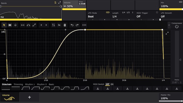 そこで必要になってくるのが別のトリガーモードですが、VolumeShaper 6ではMIDIトリガーを使って対応することになります。