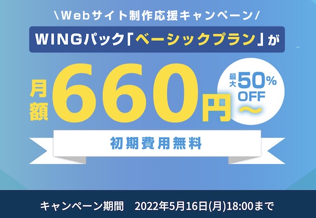 ConoHa のレンタルサーバーと独自ドメインがセットになった長期利用割引プラン【WINGパック】を新規で申し込むとConoHa WING通常料金から最大50%OFFに(5月16日 18:00まで)
