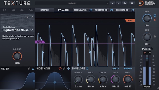 Textureはトラックのオーディオをトリガーにして音を生成しますが、ゲートとサイドチェインフィルターでトリガーする部分を調節することができます。