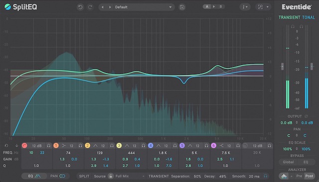 Eventideの特許技術Structural Split Technology」を使い、オーディオソースのトランジェントとトーンを別々に処理でき、さらに周波数ごとにPanやMid/Side処理までできてしまうという、もはやEQを域を超えたEQです。