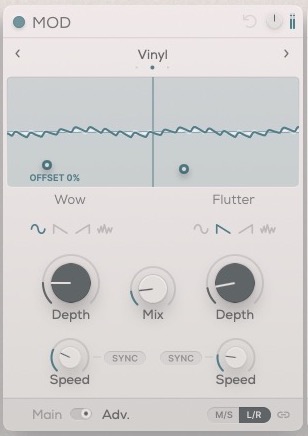 ワウとフラッターでアナログな記録媒体(Tape、Vinyl、Cassette)のシミュレートからエフェクティブな使い方までできるモジュレーションです。