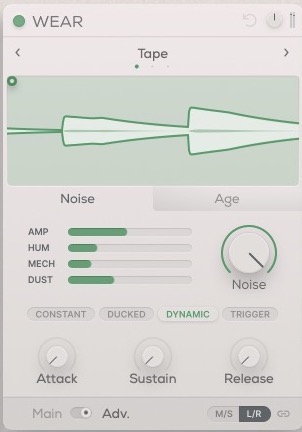 Noiseタブの方ではAmp(ヒス)、Hum(電気ノイズ)、Mechanical(物理的な動きや音)、Dust(光のアーチファクト)のバランスや、その再生方法(常に鳴らす、入力された音に合わせて鳴らすなど)の設定ができます。