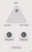 ボトムエンドをコントロールするWarmとハイエンドを際立たせるShine、そして面白いのがその上にあるIRでエミュレーションしたCleanとVintageという2つのミキシング・デスクの特性を、トライアングル・パッドを使い自由なバランスで混ぜることができる機能です。