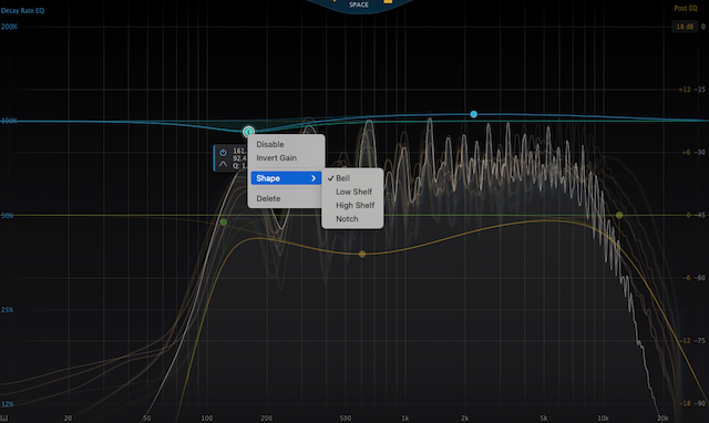 多くのリバーブは高域と低域に分けて減衰率をコントロールできる仕様になっていますが、Pro-R2は完全にEQ感覚で調整できますので、特定の帯域だけディケイを短くしたりとかも簡単にできちゃいますよ。