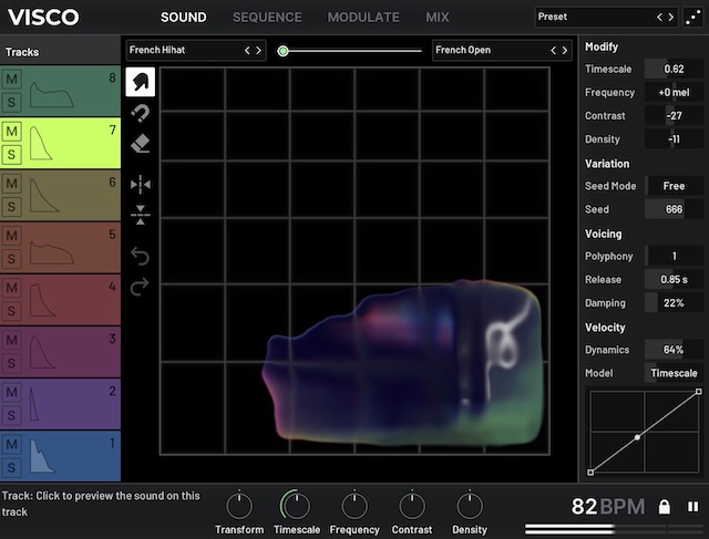 Visco は8つのトラックを持つビート・メーカー/ドラムマシン・プラグインです。