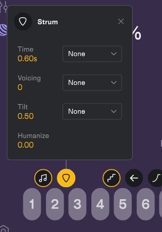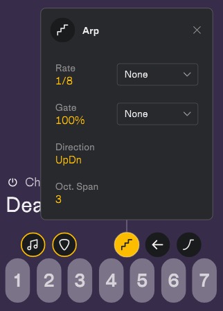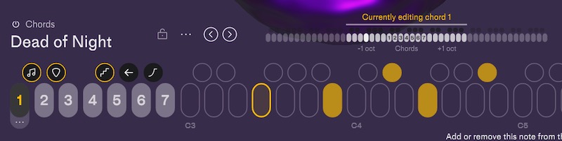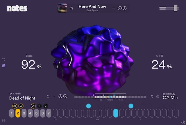 さて、ここまでは通常のシンセの部分を見てきましたが、ここからはNotesの売りにもなっている遊び心あふれるコードやフレーズ演奏を見ていきましょう。