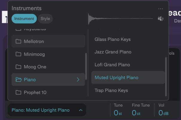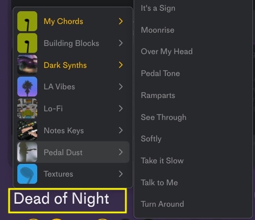 音色、コード進行、パターンが含まれているプリセットで、ジャンルと楽器から選べます。