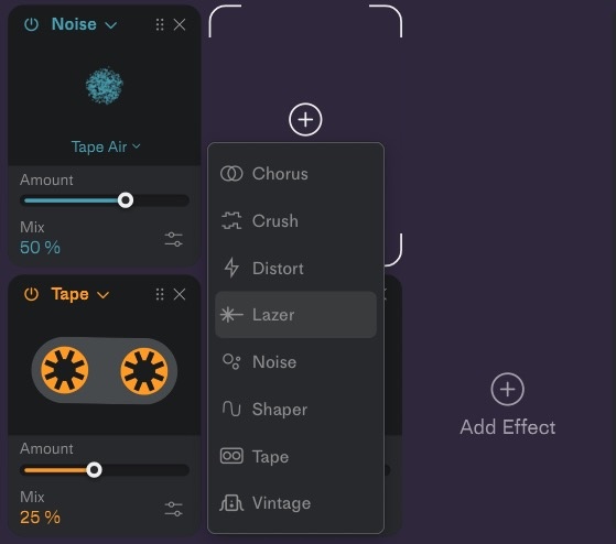 マスターエフェクトは3つのスロットが用意されています。