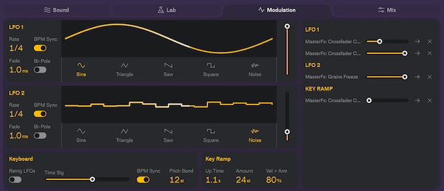 Sublabのようなシンプルで使いやすいGUIをベースに、さりげなくモダンなシンセの機能が詰め込まれていますね。