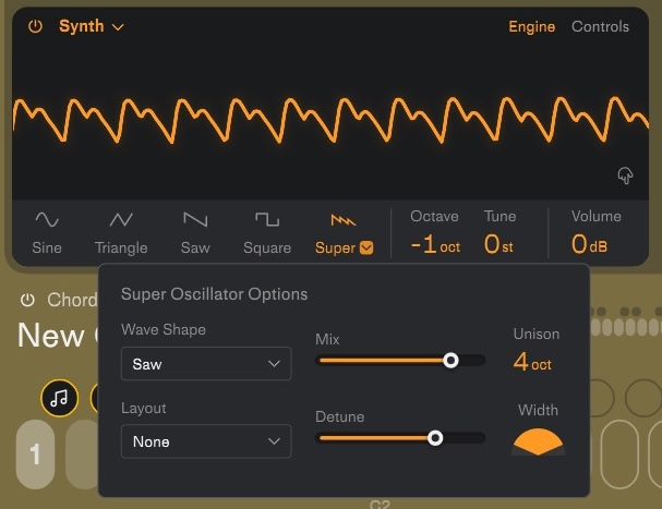 Superは最大7までユニゾンできますので、Supersawのような分厚いユニゾンサウンドも余裕です。