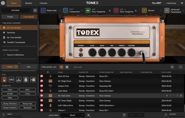ToneModelには、エフェクター、アンプヘッド、キャビネットのそれぞれ単品と各組み合わせのパターンがありますので、お気に入りのキャビネット・シミュレーターをお持ちの方はそれと併用することなんかもできますよ。