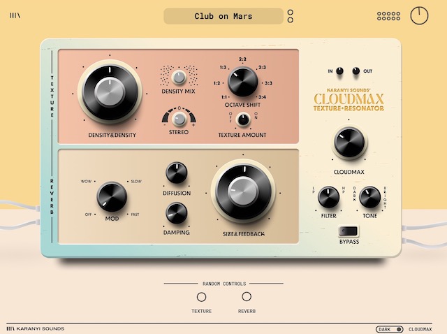 Cloudmaxは二つのグラニュラー・エンジンとアルゴリズム・リバーブで、音源に雰囲気のあるテクスチャーや空間をプラスすることができるプラグインで、別空間へ誘う系サウンドを直感的に仕上げることが可能です。
