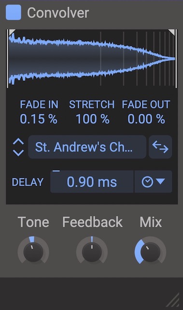 コンボリューション・リバーブとしてはだいぶ軽い方かなと思います。