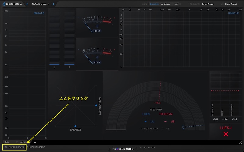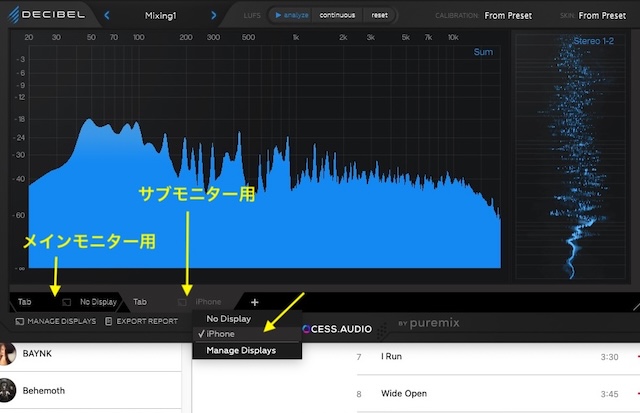 私はスペクトラム・アナライザーとステレオ・フィールドを表示させています。