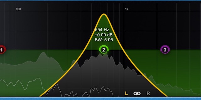 左右(L/RもしくはMid/Side)に同じイコライザーフィルターがあり、中央に共通のコントロールがある一般的なステレオEQの構成になっています。