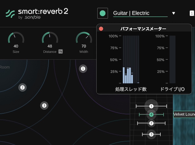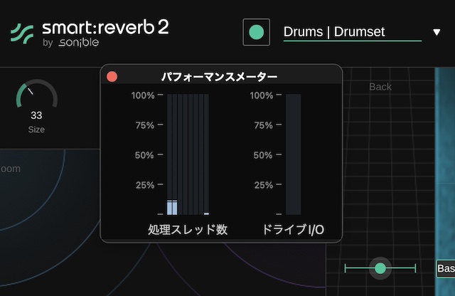 smart:reverb2には、リバーブお馴染みのDry/Wetミックスという名のパラメーターがありませんが、Distanceがそれにあたるものになっています。