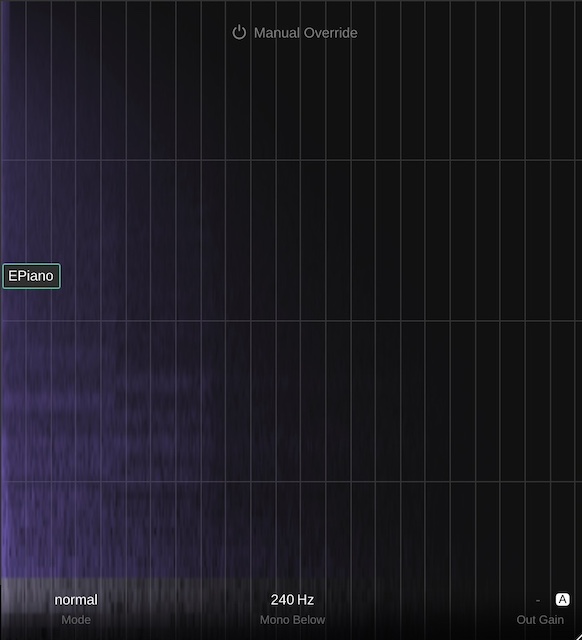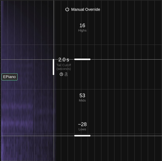 Manual Overrideをオンにすると、リバーブ・テールの時間を設定(テールにダッキング)できる機能と、リバーブ成分を3バンドに分けて調整できる機能を有効にします。