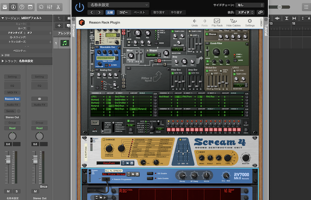 Reasonなら他のDAW上でも VSTやAU PluginとしてReasonラックをドスンと呼び出すことができます。
