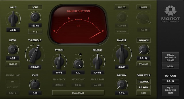 フリーのコンプレッサー紹介では必ずと言って良いほど見かけるTOKYO DAWN LABSのTDR Molotokは無料版とは思えないくらいのクオリティと機能ではありますが、今回紹介する有料版のTDR Molot GEの方はさらに多機能で幅広く使え、コストパフォーマンスにも優れたプラグインになっております。