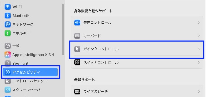 設定→アクセシビリティ→ポインタコントロールと進み、