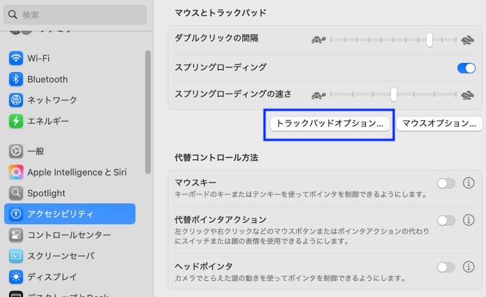 トラックパッドオプションをクリック、