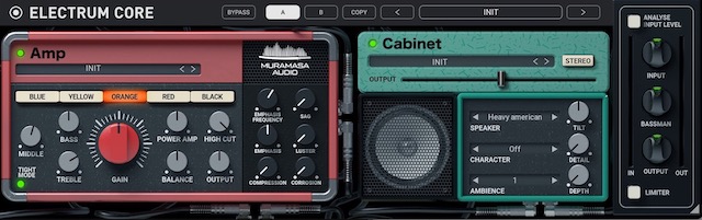 ElectrumCoreはアンプセクションとキャビネットセクション、それとグローバルコントロールの3つの部分からできています。