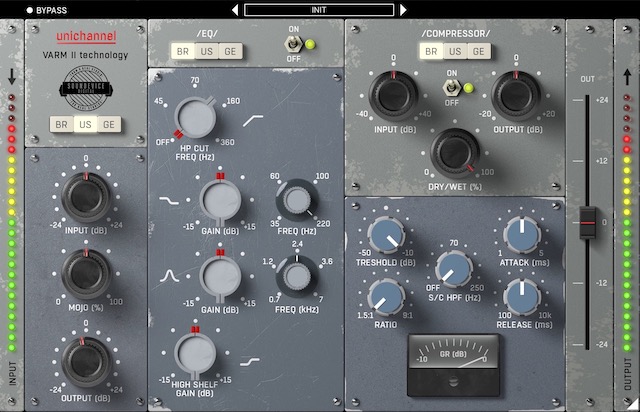 そこでプラグイン、となってくるわけですが、今回紹介しますUnited PluginsのUniChannelもサウンドとルックスのテンションはそのままに、いい感じにハードルだけ下げてくれたヴィンテージ・スタイルのチャンネルストリップ・プラグインとなっております。