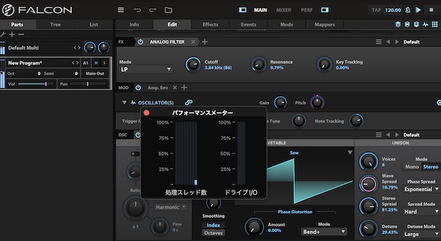 Falconといえども凝ったサウンドにすれば当然それだけ負荷も高くなります。