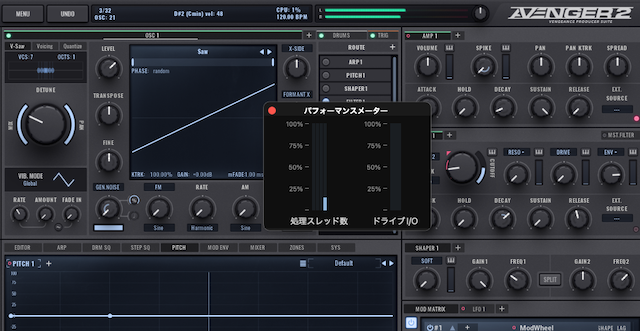 Avenger2は超多機能シンセでありながらほぼ1画面という、少々無謀とも言える作りになっております。