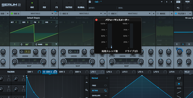 ただ、プリセットで比べるとSerum2のよりも軽いものもあったりしますので、思っていたほどではないかなという感じです。