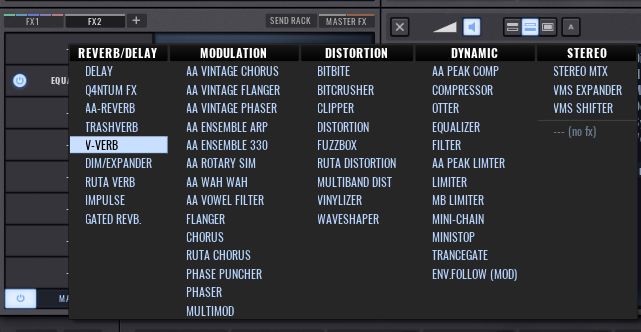 マスターエフェクト、センドエフェクト、トラックごとにもかけられますので、一度書き出さずにAvenger2内でミキシングまで完結させることも十分可能です。