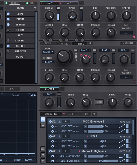 ドラムマシンはオシレーターから選択する形ではなく独立して搭載されています。
