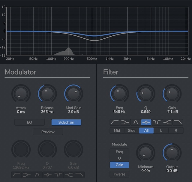 個人的には、低音のダッキングはこれまで通りDuckを使うと思いますが、「サイドチェインを使ったピークでのちょっとしたカットに複数のEQを挿すのもなんかなー」って時がけっこうあるので、そんなシーンにバッチリハマるプラグインに出会えたと感じてます!