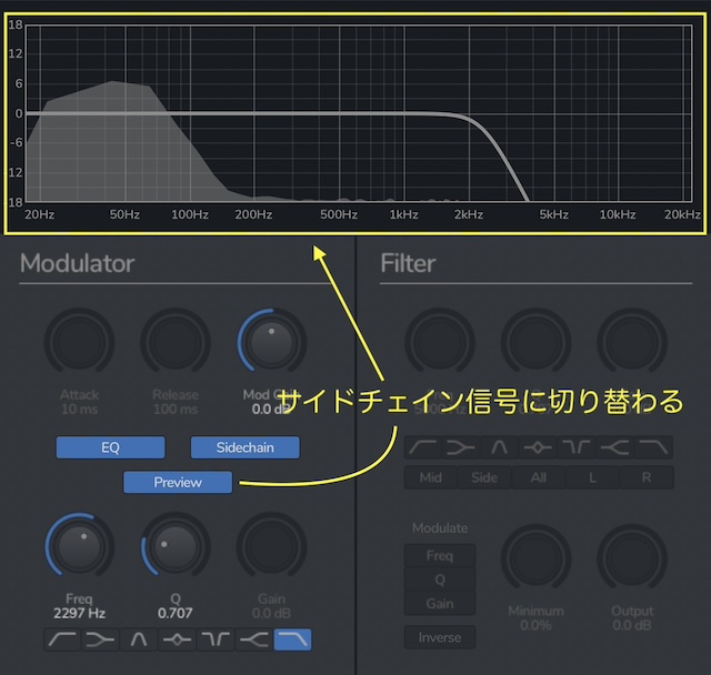 サイドチェインEQセクションのフィルターはFilterセクションと同じ構成。